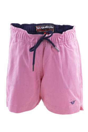Heavy weight twill short with elasticated waist and contrast waistband facing, drawcord tie with metal ends, side welt pockets, jet pockets on back, Bullzye embroidery on front and back, side splits